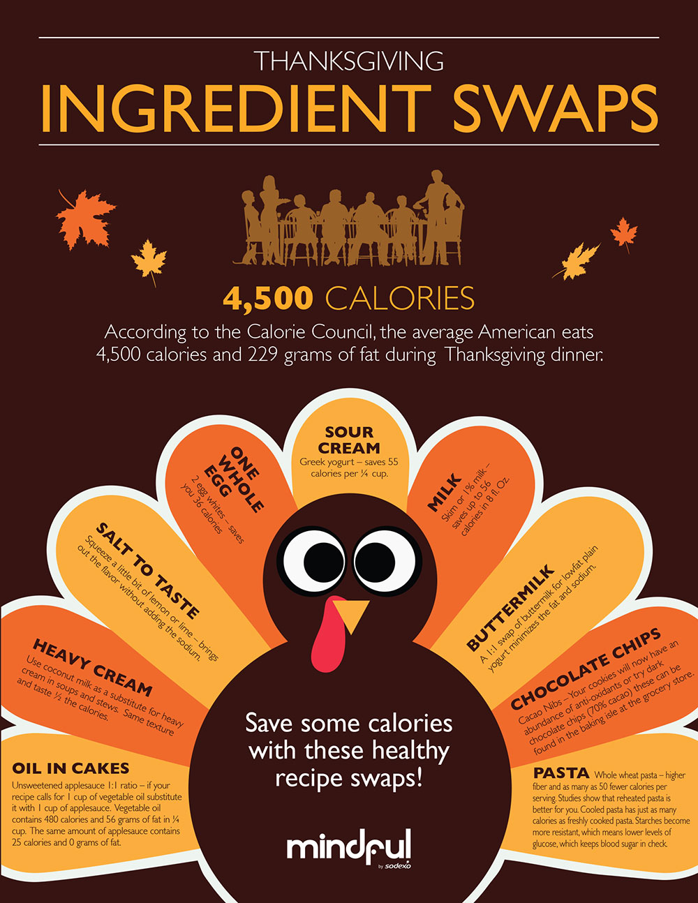 The average American eats a whopping 4,500 calories during Thanksgiving dinner. Try these healthy recipe swaps to save yourself some calories on Turkey Day.