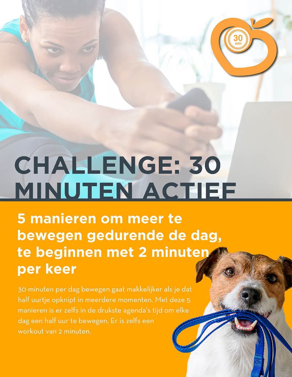 Onderzoek wijst uit dat elke minuut beweging meetelt. Vandaag op het programma: 15 keer 2 minuten bewegen. Klinkt pittig? Nee hoor, zo pak je het aan: