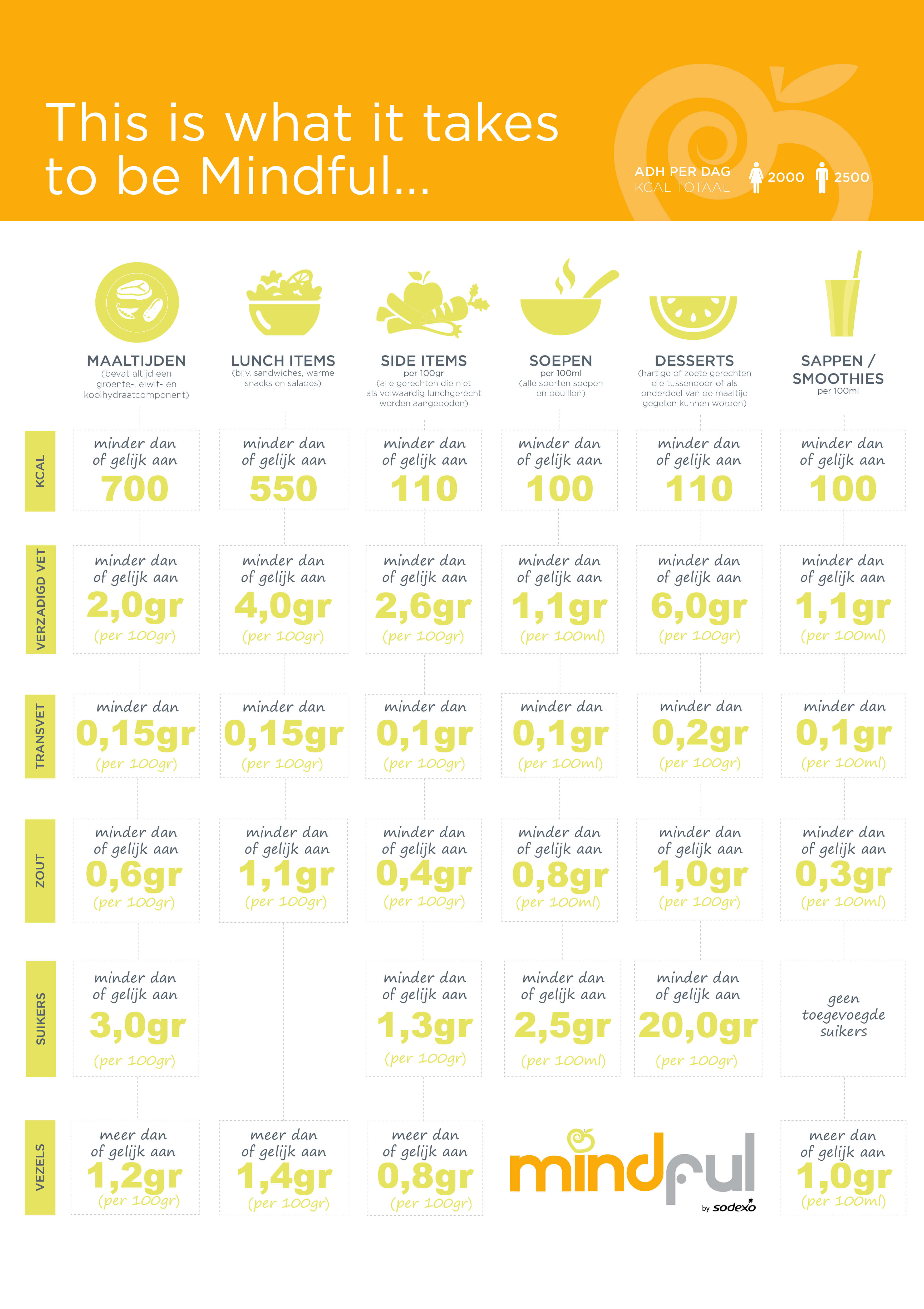 Alle Mindful recepten die door onze chefs zijn ontwikkeld, voldoende aan deze richtlijnen.