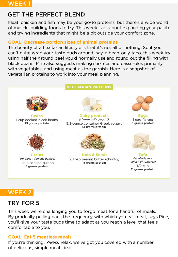 There are plenty of reasons to jump on board the flexitarian train. You’ll lower your risk of hypertension, improve your cholesterol levels, and gain greater protection against cancer and type-2 diabetes. And then there’s the all-important weight factor: Studies show that people who eat a plant-based diet weigh less than meat eaters.