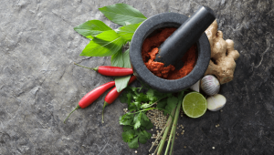 - 7. Garnish with the reserved tomato, cucumber, onion and peppers.